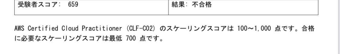 スコア 659/1000 ということで一見惜しいように見えますが、「これはアカン」と数日前に気づき最後に過去問を解き始めたので惜しいように見えています。おそらく AWS Cloud Quest のみで挑んでいたらもう少し低かったと思います。