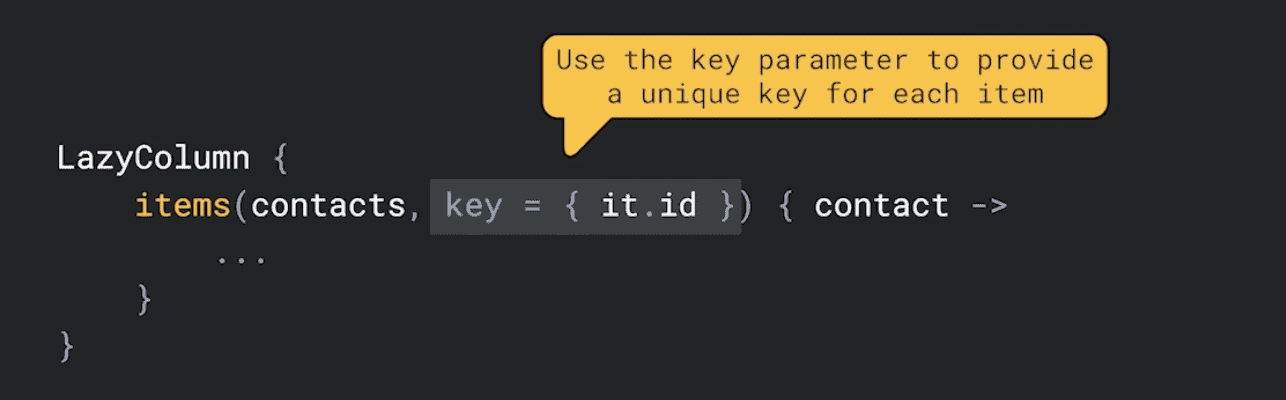 - LazyList でキーを定義して、どのアイテムが変更されたかを知るのに役立てられます。